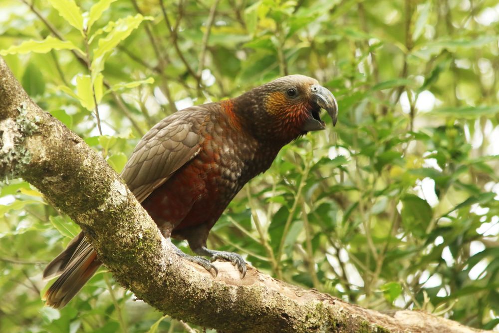 Birds are loud! Especially the kaka and kakariki. One key part of the workshop is identifying birds and their calls, listening out for their tiny churps or loud screeches. A bird calling often has company near by. By waiting patiently you might be rewarded by a close encounter - in our case, a very cheeky, curious kaka!